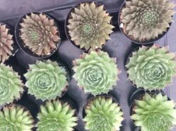 Four Small Succulent Plants In Pots. Assortment Of 4 Small Hens And Chicks Plants, Shipped In Pots