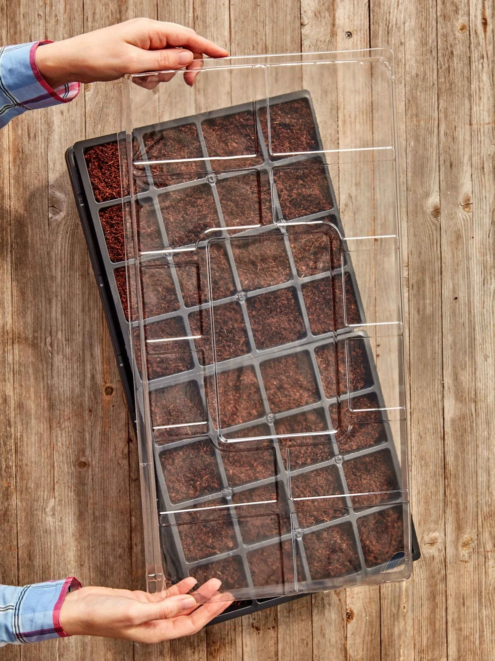 This Burpee-innovated seed starting kit has everything you need to grow even the largest of seedlings. Extra-large cells measure 2.25″ (w) x 2.25″ (l) x 2″ (h), and encourage your plants to develop big, strong root systems and minimize transplant shock, giving you healthier plants. This kit’s self-watering system allows for easy care and accelerated plant growth.