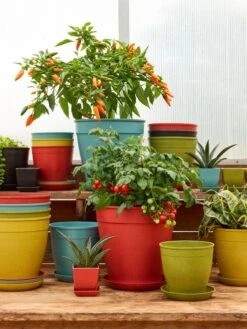 A lightweight, attractive and sustainable option, these eco-minded 9-inch pots with saucers are made primarily of rice hulls and can be composted! They last for up to five years outdoors and even longer indoors, with five colors to mix and match.