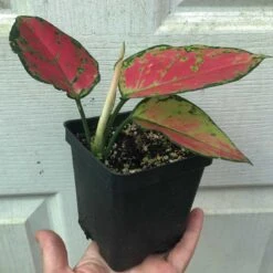 LIVE Aglonemia ‘Lucky Red’, Chinese Evergreen – pot size 3.5″ tall. Easy grow plant!