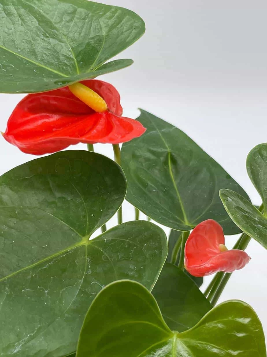 Anthurium Red, Flamingo Lily, andraeanum Linden ex André painter’s palette in 4 inch pot, very full healthy