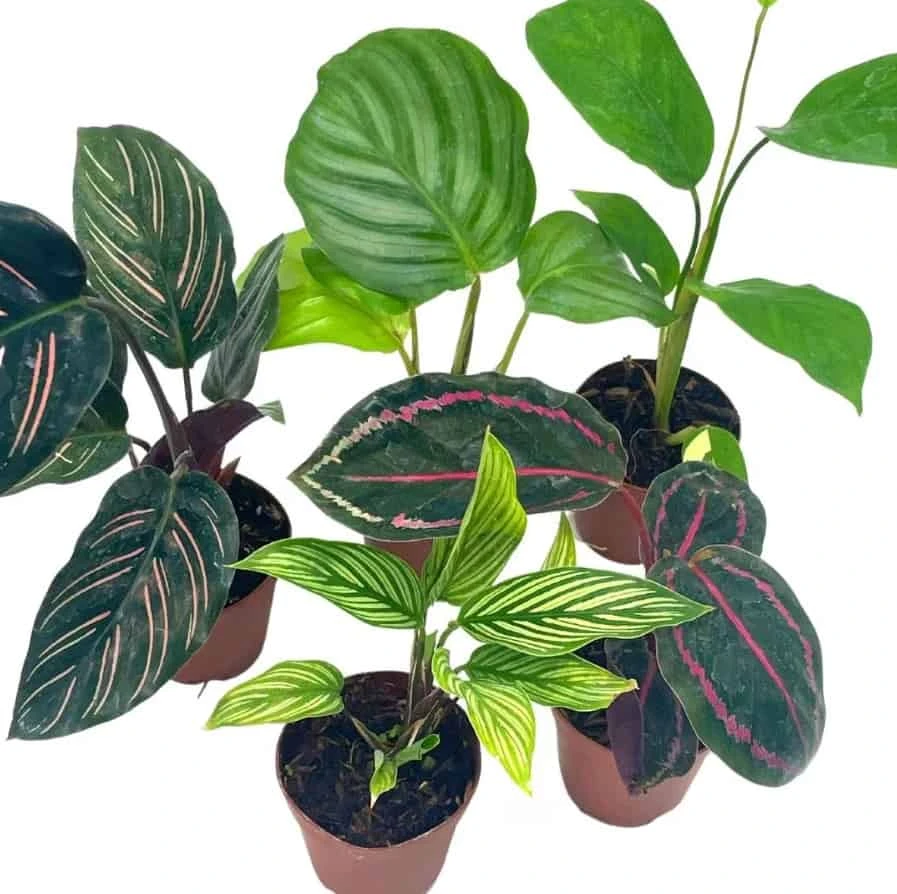 Calathea Assortment Set, 2 inch pots, 5 different Prayer plants, variety gift, indoor low light