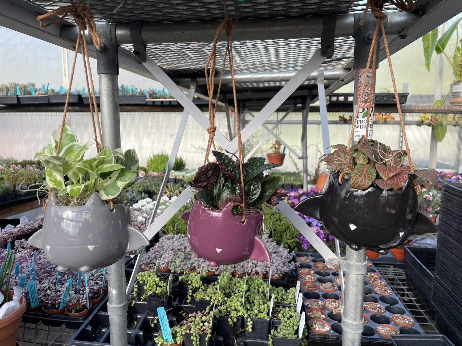 Makes a perfect living gift or festive decor. 4″ opening diameter. Glazed Ceramic pot with attached cords for hanging.