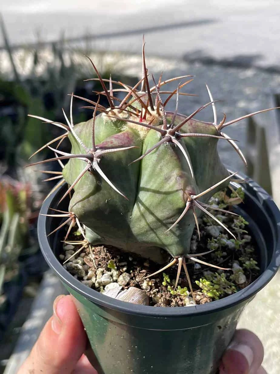 A stunningly unique star-shaped variation of the Ferocactus emoryi, known commonly as Emory’s barrel cactus, Coville’s barrel cactus