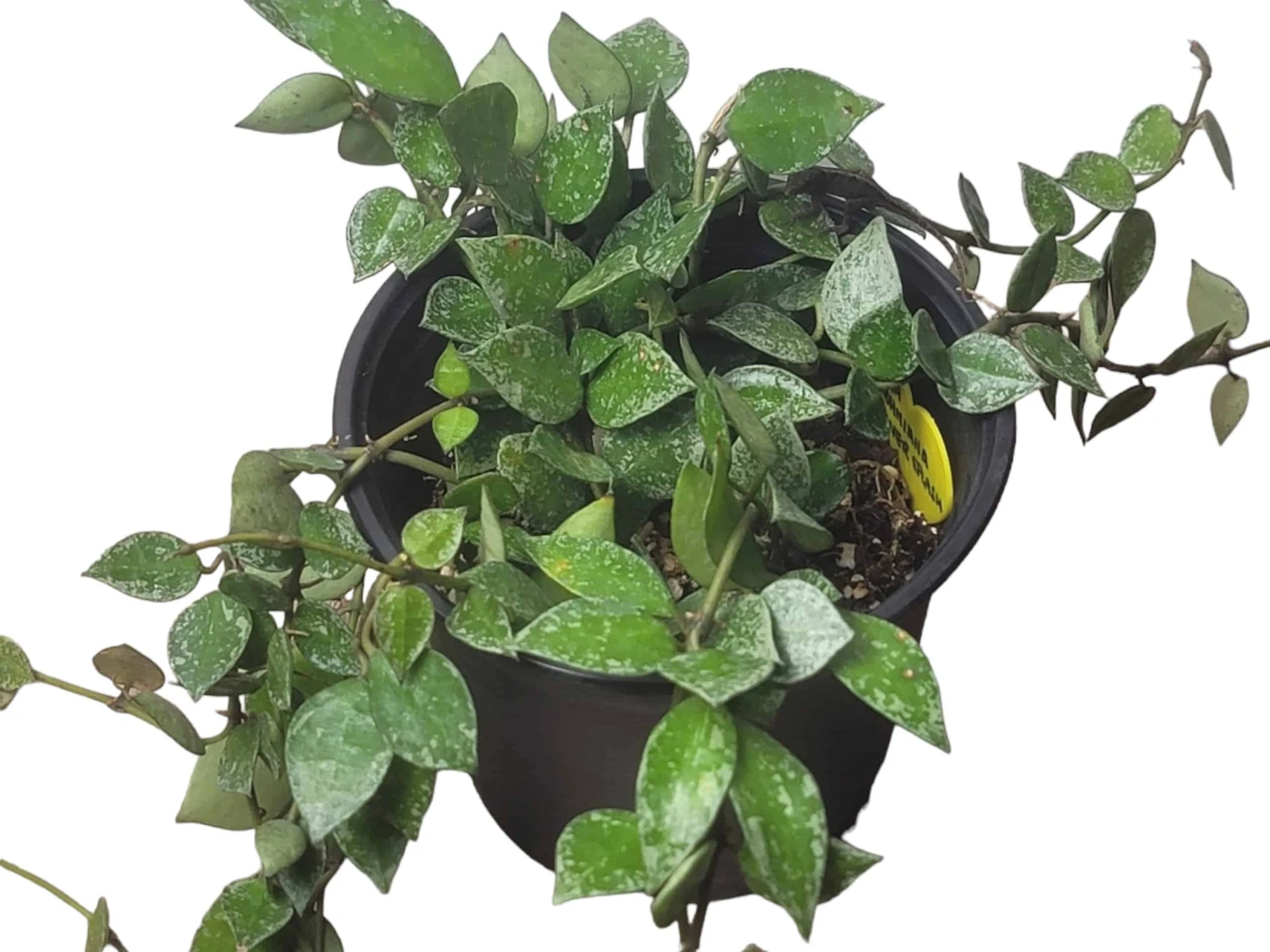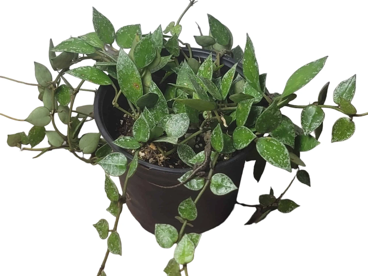 Hoya Krohniana Silver Splash is an easy to grow house plant. These plants prefer bright, indirect sunlight. Water once the first 2″ of soil has completely dried out. Hoyas are prone to mealy bugs and other common houseplant pests. Keeping an eye out for infestations and if needed using an organic pest control alternative will eliminate any issues. During the active growing season using a 1/4 strength fertilizer, specifically for house plants, will keep your plant happy and healthy!