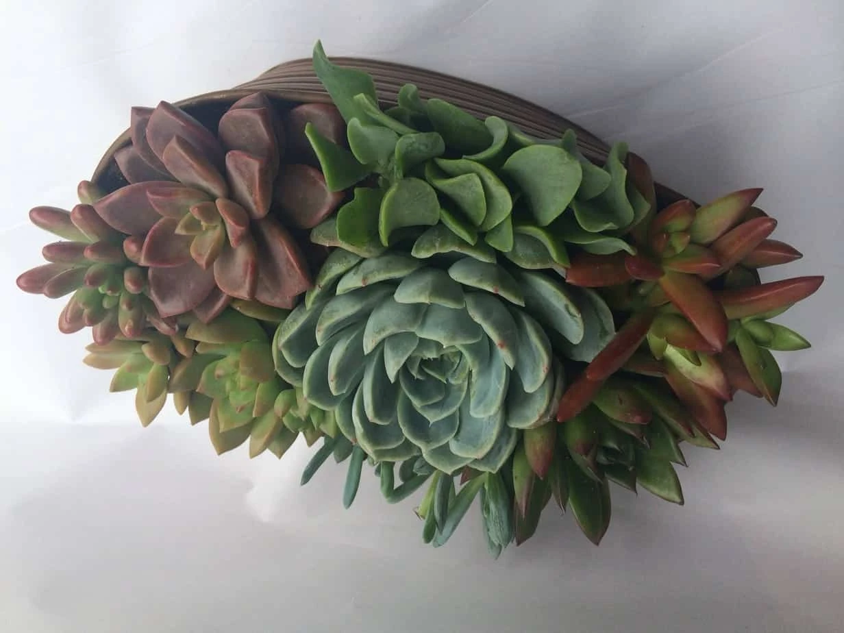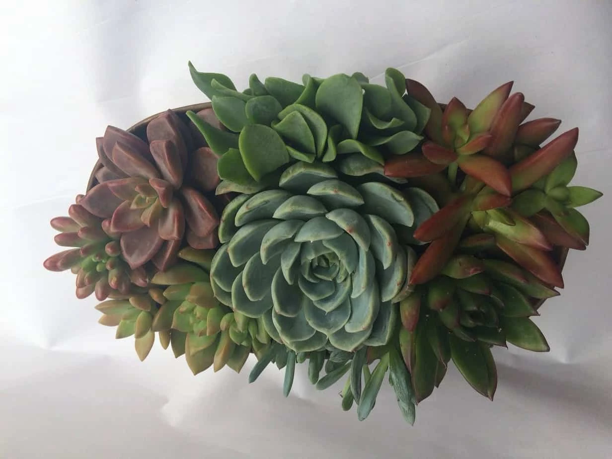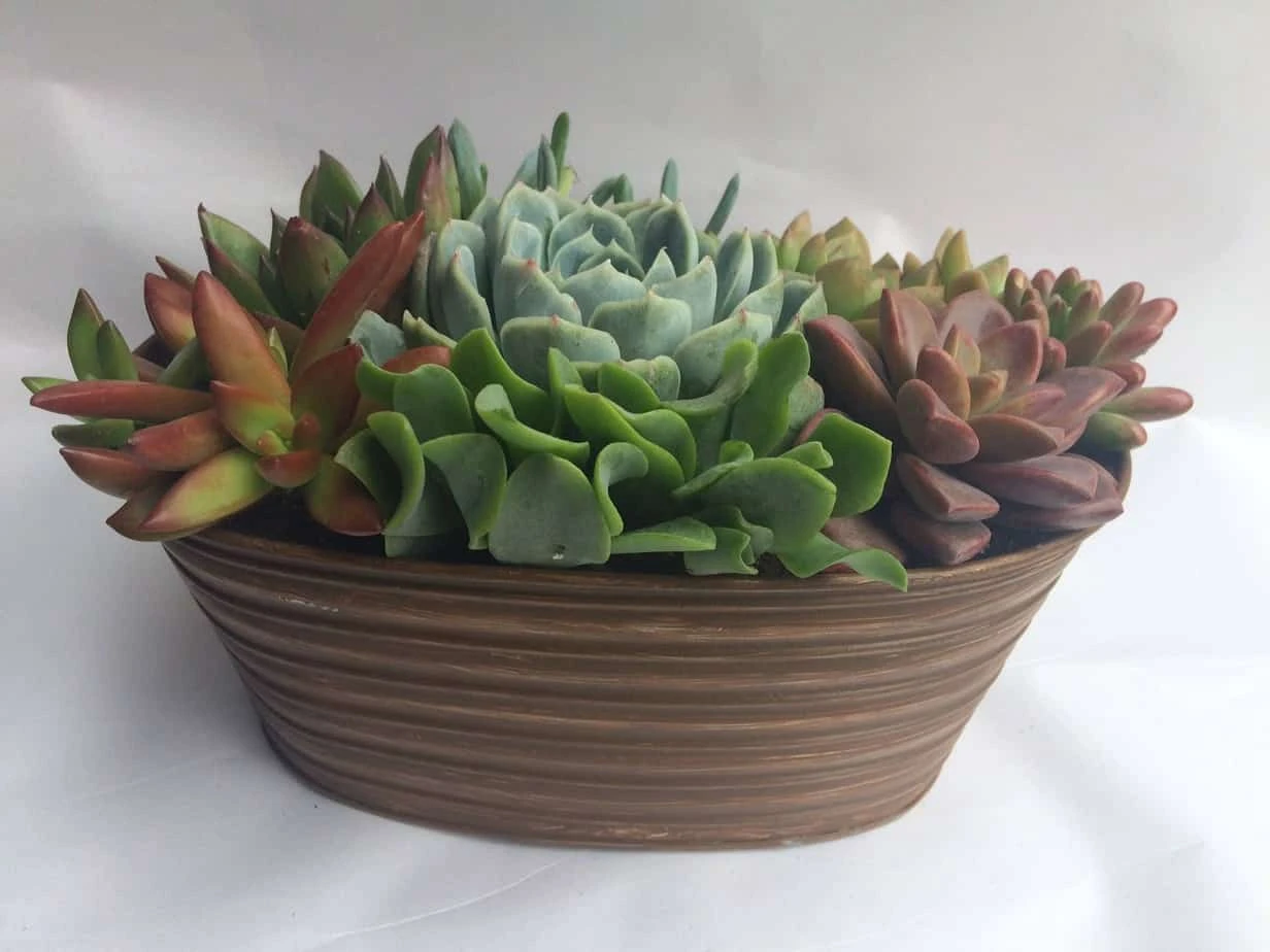 You will receive one complete Tan Oval Tin Planter Dish Garden, fully assembled. Plants will be as pictured or with slight variations depending on seasonal availability. It will be carefully wrapped for shipping and shipped via USPS Priority Mail.