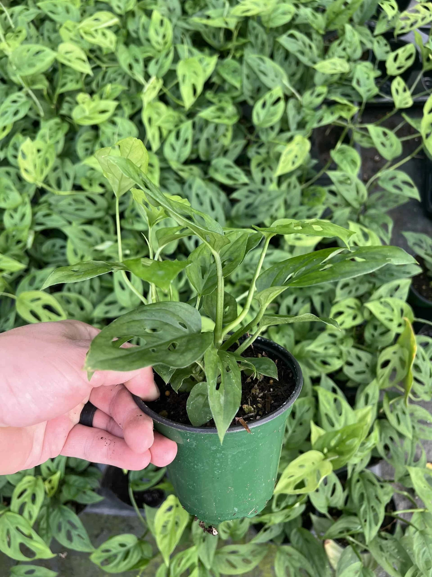 Monstera Adansonii, also known as the Swiss Cheese Vine, is a captivating vining plant with unique, fenestrated leaves. This low-maintenance beauty is perfect for both hanging baskets and climbing trellises. Thriving in indirect light, it adds a touch of tropical elegance to any space. Allow the soil to dry out between waterings, and watch it flourish. With its air-purifying qualities, it contributes to a healthier indoor environment. Elevate your greenery game with Monstera Adansonii, a must-have for plant enthusiasts. Bring home this stunning vine and infuse your space with natural charm and vitality today!