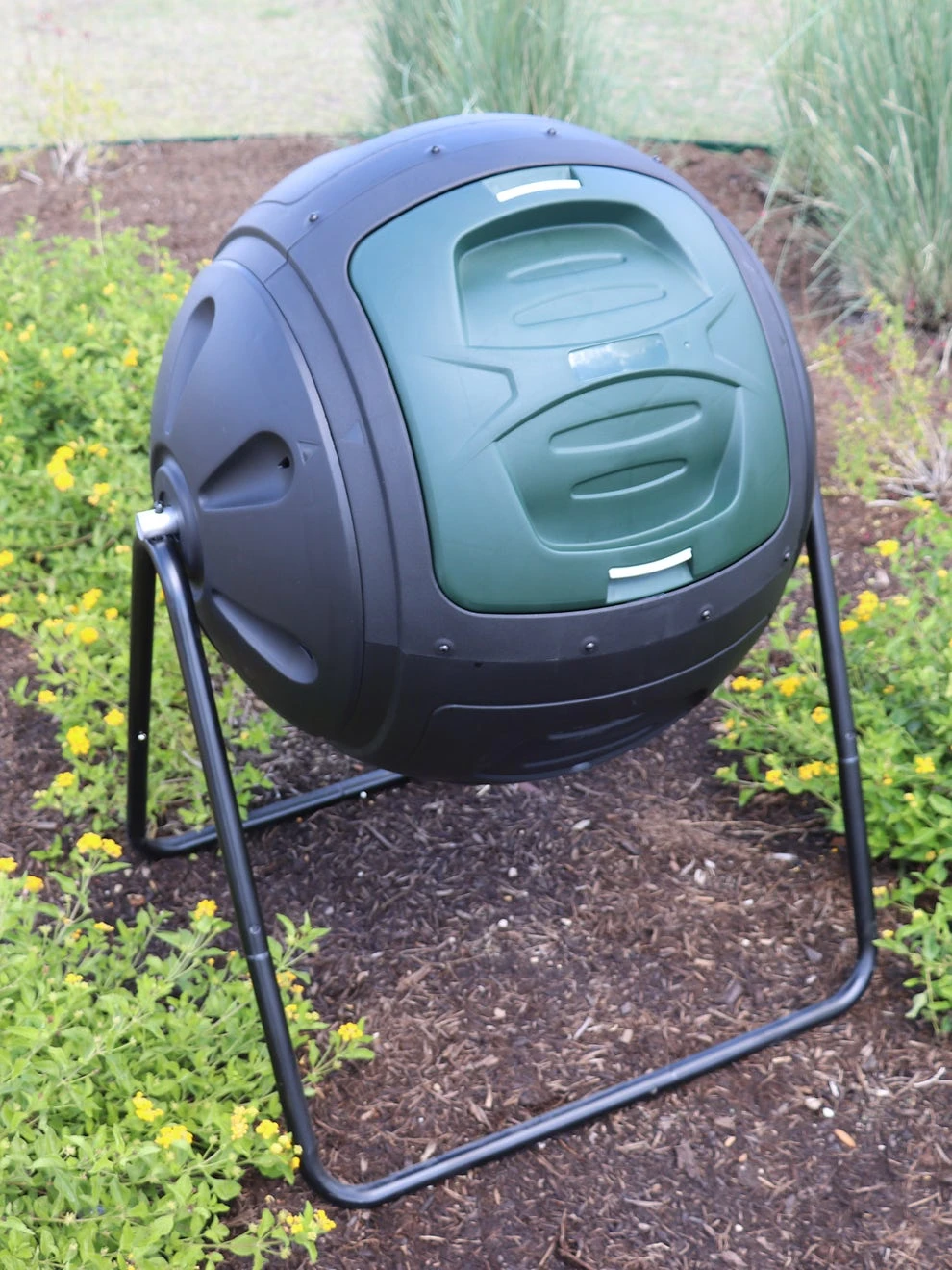 Ms. Tumbles® features large access doors and a drain for removing “compost tea,” an excellent liquid fertilizer. Ms. Tumbles® holds 35 gallons in a single chamber.