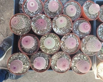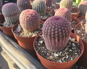 The Rainbow Cactus (Echinocereus Pectinatus) is as beautiful as it is hardy. With its pinkish/reddish coloring it is sure to be a great statement piece in any arrangement.