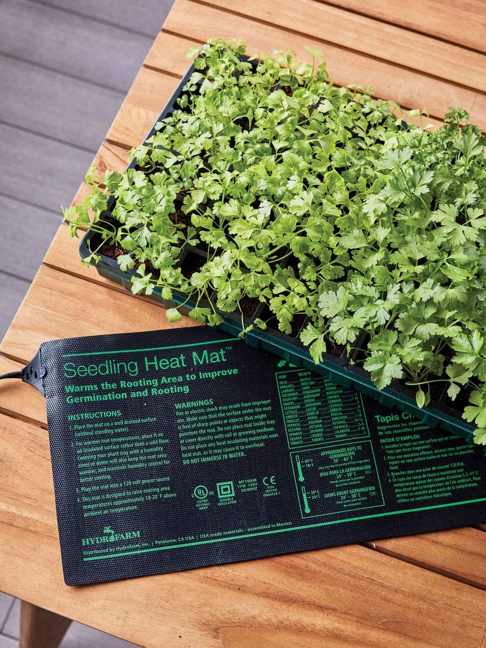 Seedling Heat Mats prompt seeds to germinate and grow faster-distributing an even 10-20 degree increase in temperature. The heavy rubber mats are sized to fit under common seed flats, the 9″ x 19 1/2″ mat under one flat, the 48″ x 20″ under four flats.