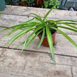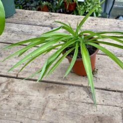 Spider Plant Solid Green 2.5” Tall Pot Starter PlantThe Spider plant is a flowering perennial native tropical South Africa. The leaves of the spider plant are thin ribbon like strands which end in a point and grow upward and bend downward giving it the look of a spider. The Spider plant produces small white flowers that grow along a long stalk independent to the leaves of the spider plant. Also known for their air purifying qualities, the spider plant is a great companion to any household of office.