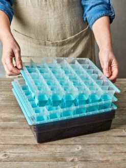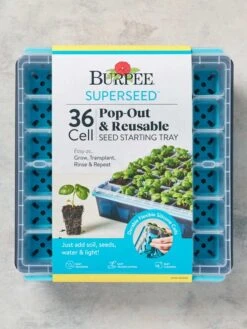 The Burpee SuperSeed™ tray is designed for easier seed starting. With 36 flexible cells, it’s perfect for indoor sowing all vegetables, flowers and herbs! Soft food-grade silicone cells cradle seedlings and gently pop out to reduce stress during transplanting. Molded corner slots in each cell improve drainage and soil aeration to set your seeds up for germination and growing success. Deep channels in the watering tray draw excess away from the cells, while the raised perimeter edge keeps water contained in the tray – no spills! The tray’s side handles make it easy to lift and pour off excess water or check on seedlings. Rows are labeled alphanumerically for seedling identification with included Plant-o-Gram diagram. After transplanting, seed trays are easy to clean and reuse or store for next growing season. Durable and top shelf dishwasher safe. The SuperSeed™ tray is also available in two other sizes.