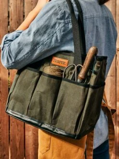 Waxed canvas outerwear has long been the choice of active outdoorsmen and outdoorswomen thanks to its durability and water-resistance. Burpee developed this tote with an extra thick coating of wax to not only resist water and garden soil, but also to stiffen the bag so that it can stand up on its own while you focus on your garden.