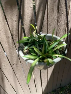 Hanging basket variegated hoya easy to care for given bright indirect light or high bright indirect light when placed out side do not give too much direct light will scorch plant. Water once or twice a week depending your environment enjoys semi moist soil. Fertilize up to twice a month