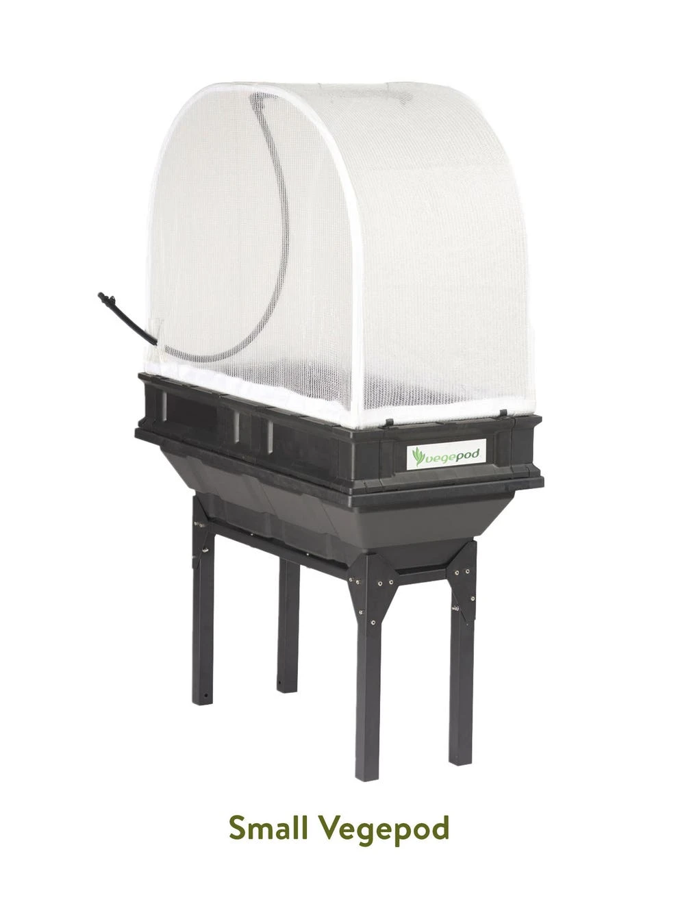Easily grow your own delicious food, from herbs and greens to carrots and tomatoes! The Vegepod is quick and simple to assemble with no special tools required. Built-in reservoirs allow the growing system to self-water for up to 3 weeks, recycling unused soil nutrients so nothing goes to waste. A mesh cover creates a microclimate that promotes quick plant growth and protects crops from UV rays and frost, extending your gardening season. Open the cover to encourage bees to pollinate flowers inside or close it up to keep pests out. The stand brings your Vegepod up to a comfortable waist height. Choose your Vegepod size based on how many you’re feeding!